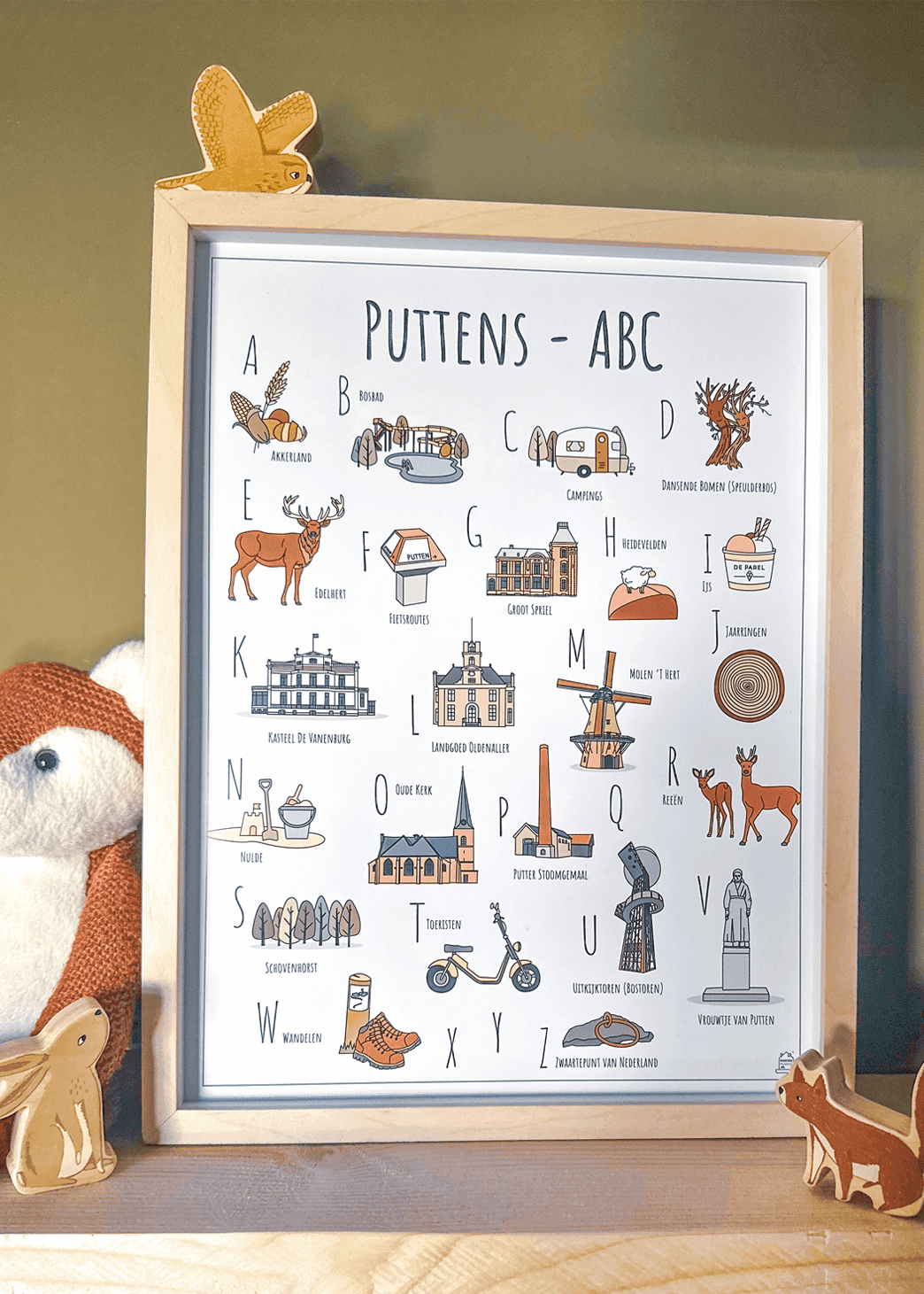 Een unieke poster met herkenbare en handgetekende illustraties van Putten. Het lokale alfabet is leuk als cadeau voor jezelf of iemand anders! Bekijk alle specificaties